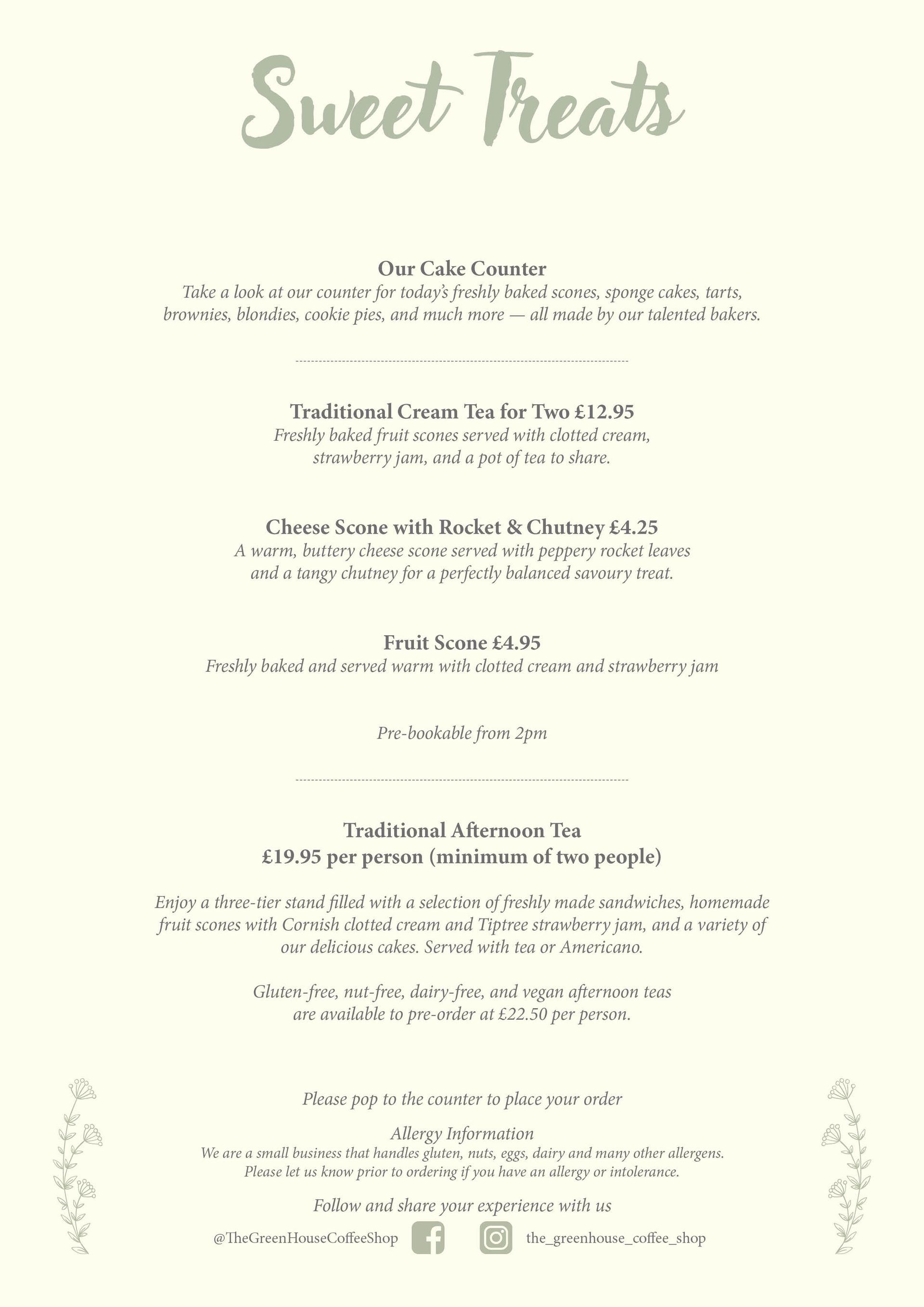 Our menu is packed with freshly made favourites, from hearty breakfasts and light lunches to indulgent cakes and sweet treats — all prepared with care using locally sourced ingredients wherever possible.